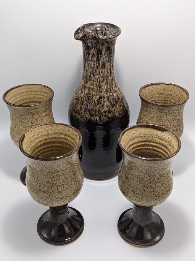 Vintage Studio Pottery Hand thrown Goblets & Decanter Jug Midcentury